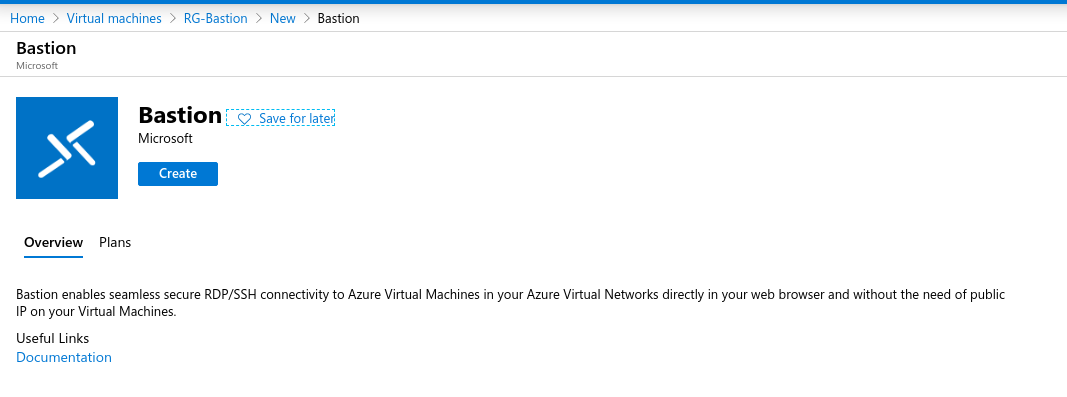 As we can see, it is very easy to create the Bastion: