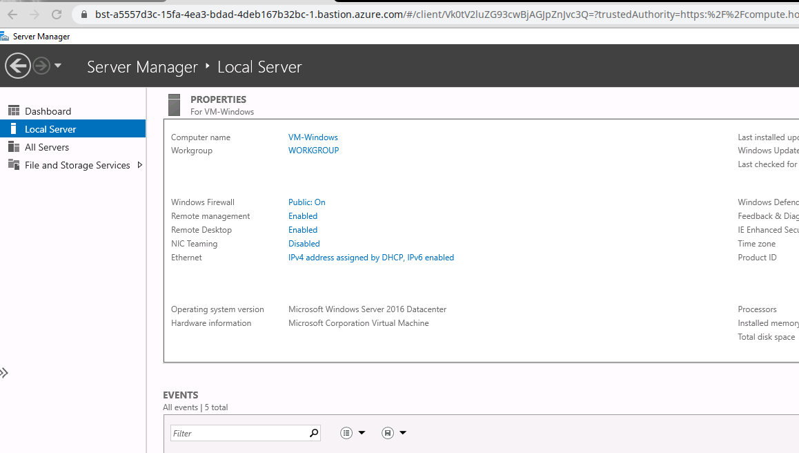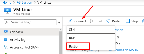 Just go to the machine we want to access and click Connect and select Bastion: