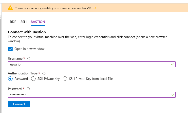 - Jump machine: We can create a virtual machine in the same network where the rest of the machines are and that is the only one with a public IP. From this machine we access the others that will not have a public IP. The disadvantage is again the cost of having another machine and that will have a public IP, so it is exposed to outside attacks.