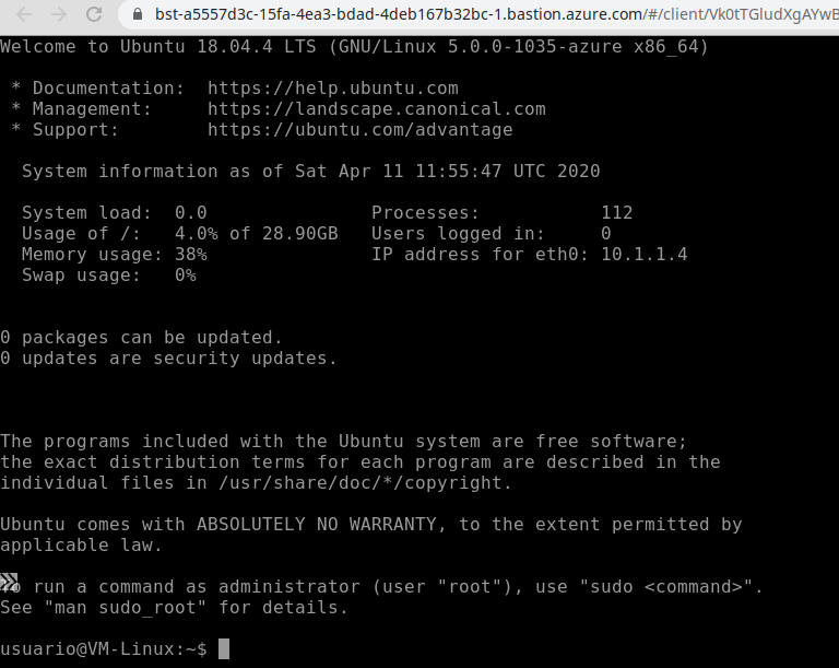 And now we have SSH access to the Linux machine from the Azure portal: