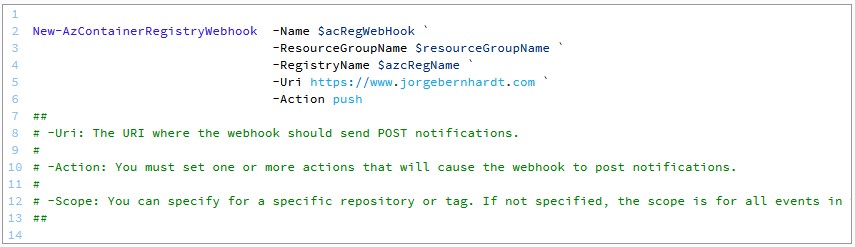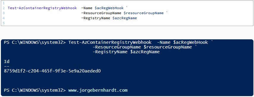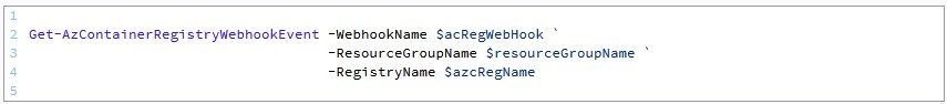 Hello everyone, as I mentioned in my previous post, today I want to show you how you can use a webhook to trigger events when certain actions are performed in your Azure container registry (ACR). With this latest post in the series, we have review all the cmdlets currently available to manage an ACR using Azure PowerShell.