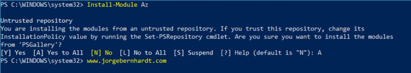 This quick blog post shows how to install the new Azure Powershell Az module that replaces the AzureRM module. Before starting the installation of the module, it is important to know that Az and AzureRM modules cannot be imported in the same session or used in the same script.