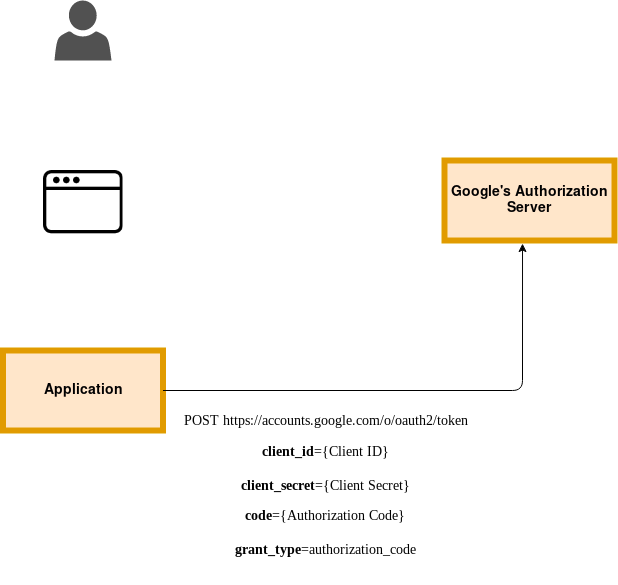 So far, all of the data has been transmitted using the browser and redirects. The browser is not considered to be a safe channel to transport sensitive data on. Therefore, the application needs to make one more step, and validate the authorization code it got from the Authorization server together with the client secret against Google’s authorization server on a safe back channel network (outside of the browser’s reach).