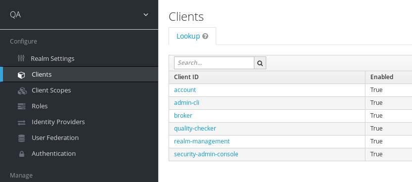 When using RHSSO, each application connected to it will be represented as a Client, and each department in the organization will be represented as a Realm. For example, the “quality-checker” client will be created in the “QA” realm for the “quality-checker” app in the QA department.
