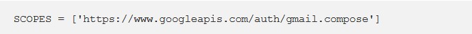 - Scope — The authorization scope that is wanted by the application. As described in the previous section, since I only want to compose an email, my scope will be gmail.compose.