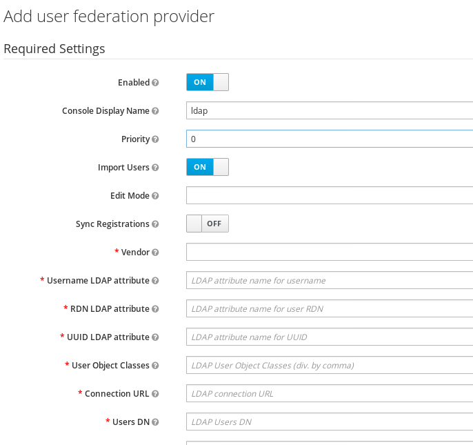 For each Realm, or department in the organization there will be a different user source. The users will be used to authenticate against the clients which are registered in the same realm. The users can be created locally on the RHSSO server —