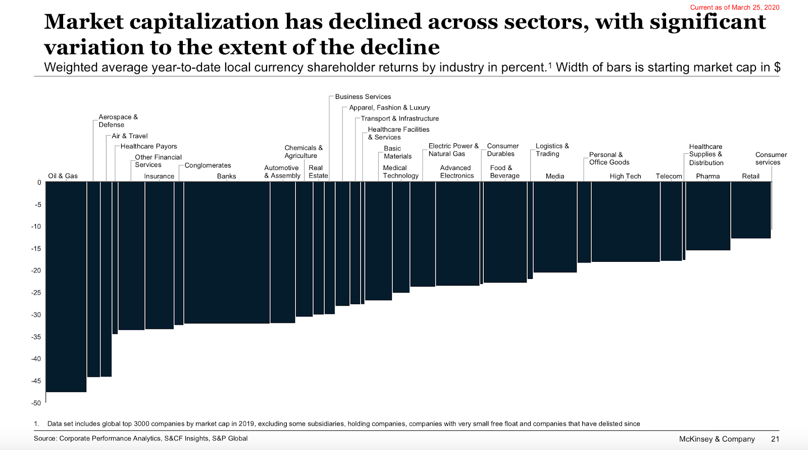 COVID-19 has affected and continues influencing the markets significantly. Some businesses are growing or staying at the same level, for example, the online entertainment industry, e-commerce, retailing, logistics (see McKinsey data), while others are facing unprecedented difficulties.