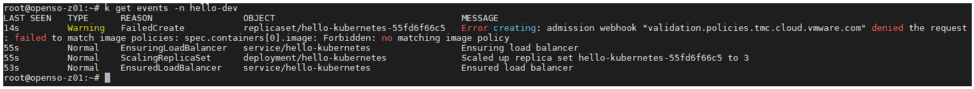 Or, like in the previous example, we make sure the dev team pulls images only from the organization’s internal registry, for which it is maintaining the images and scanning for vulnerabilities (see below ‘*.harbor.tanzuworld.com’).