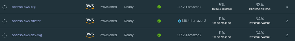 In the picture above, the cluster “openso-aws-cluster” has Kubernetes version of 1.16.4. The info message attached to it means that we can upgrade the cluster to a newer version.