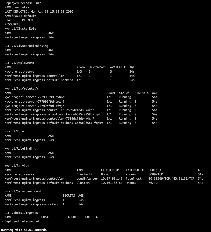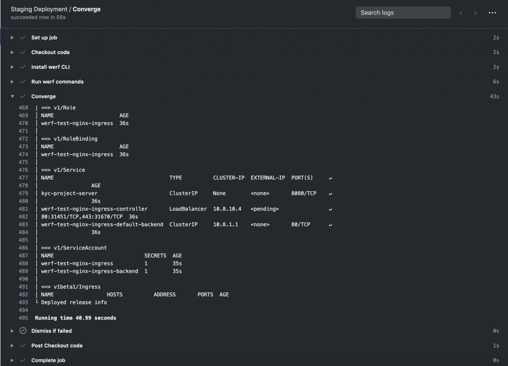 If everything goes well, by the end of the job, Werf would have deployed the entire application in the cluster.