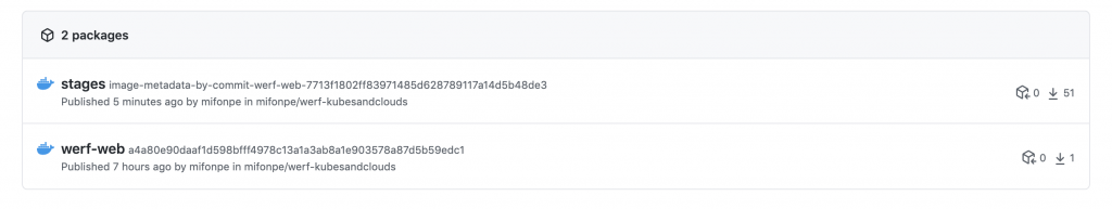 If you want to try this integration, you can fork the project and switch to the deploy branch which is already configured to be used with GitHub actions. In this case, if no Docker registry is specified, Werf will use GitHub packages as an image repository to store both the intermediate stages and the images.