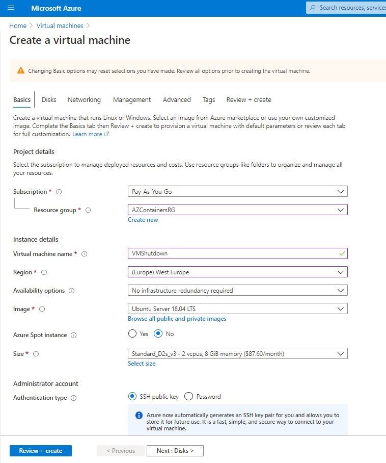 Now, most of us fill in the details in the first tab, the Basics one, and skip immediately to the Review + create to build the machine.